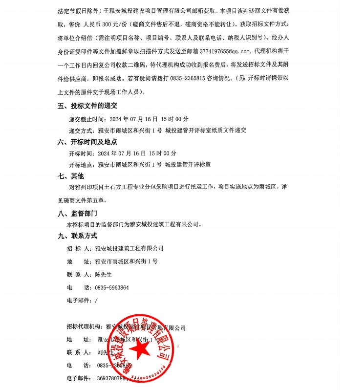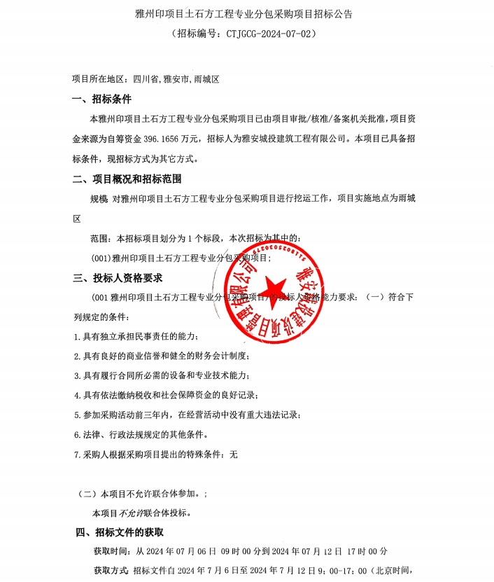 雅州印項(xiàng)目土石工程專(zhuān)業(yè)分包采購(gòu)項(xiàng)目招標(biāo)公告