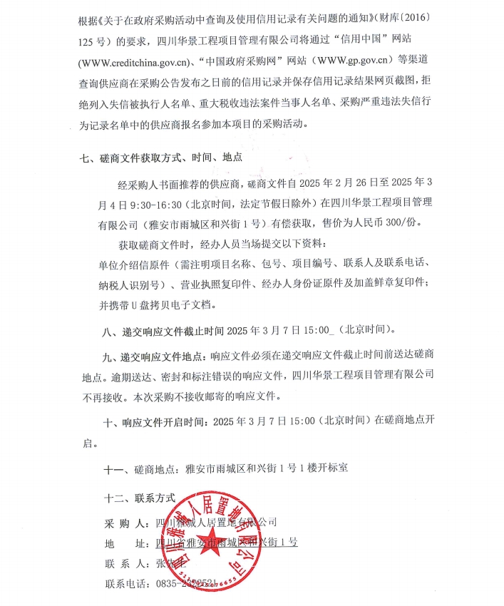 雅州印項目前期物業(yè)服務公司采購項目磋商邀請