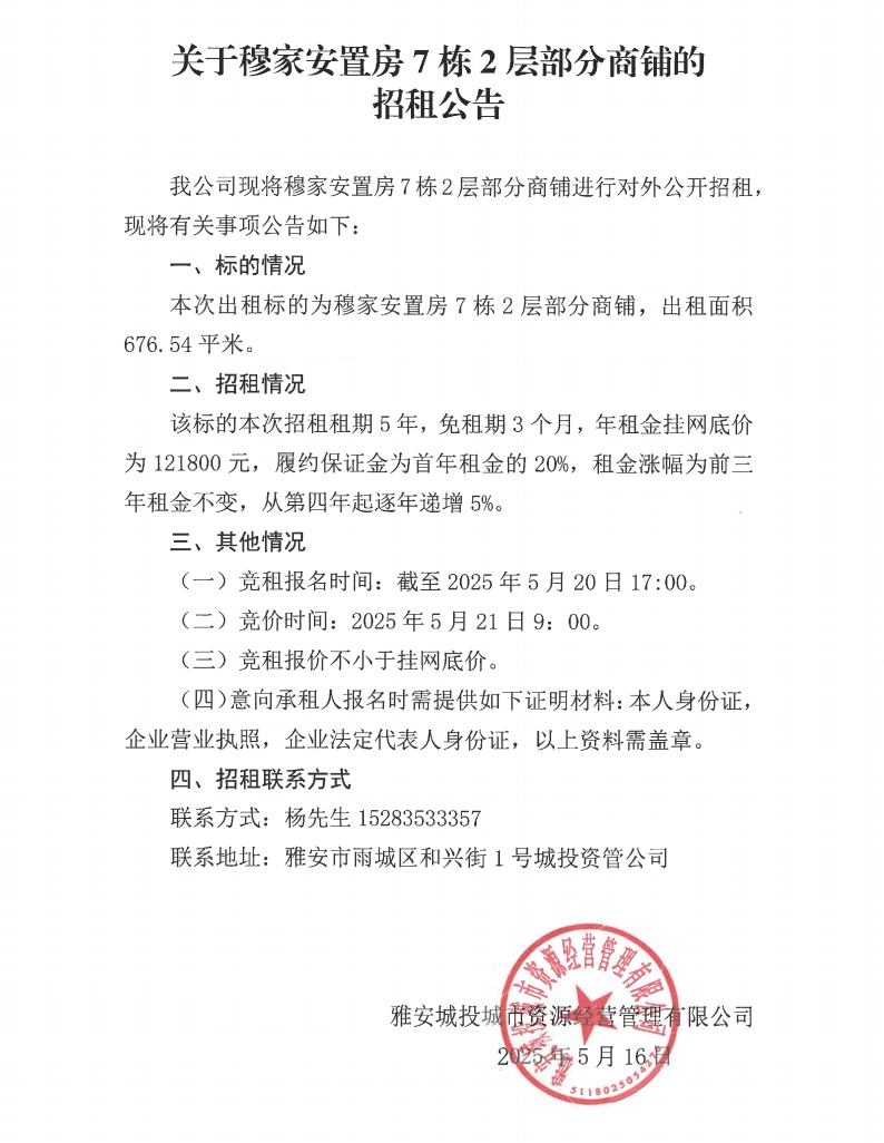 關于穆家安置房7棟2層部分商鋪的招租公告